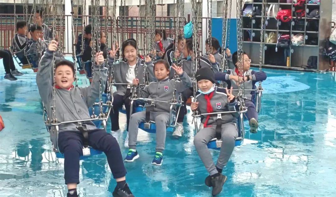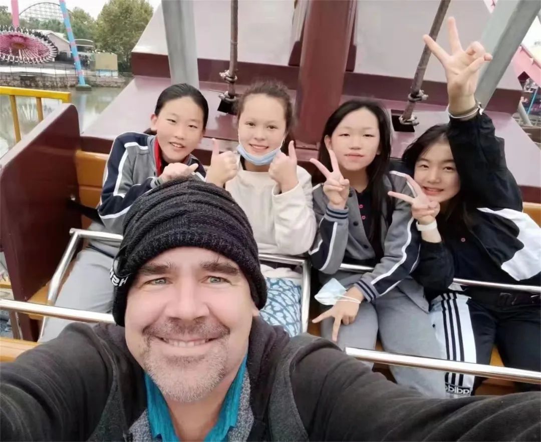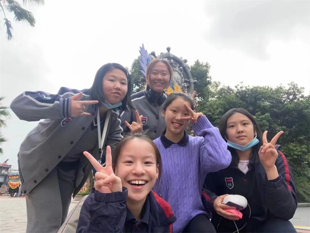 初中部学生的秋游目的地是欢乐谷,在路上去过的学生已经开始一脸兴奋地和身边的同学分享着入园后的最佳路线。五辆大巴很快相继来到了欢乐谷,在中外方班主任和导游们的带领下,少年们打卡拍照等待开园。欢快的音乐的响起,门口的表演人员开始了他们的欢迎舞蹈表演——开园了!少年们有序地排队依次进入园区,刚进园区,有的男孩们就大方热情地加入其中,摇摆身体,园区的清晨瞬间被孩子们的热情点燃了!在老师的一番叮嘱后,各个班级按照事先在学校的分组,分开进行了秋游活动,而我们的老师们也是忙里偷闲,在这美好的秋日里,一边陪伴着孩子们一边畅游欢乐谷。