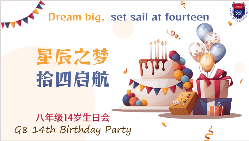 5月14日,以“星辰之梦,拾四启航”为主题的八年级14岁生日会如约而至。学校领导、家长代表和八年级师生一起参加了本次庆祝活动。