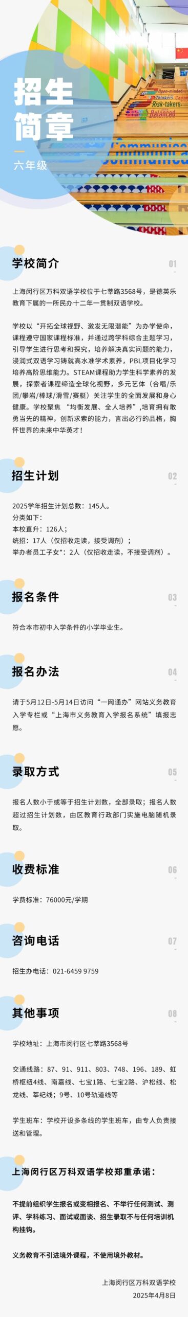 上海闵行区万科双语学校2025年六年级招生简章 2025/04/08 3:01 4月13日,万科双语开放日 扫码预约 👇👇 推荐阅读 VKBS教师图鉴:当“人类高质量教师”开始玩梗…… 2025学年第一学期插班报名开启! 本篇文章来源于微信公众号: 上海万科双语学校