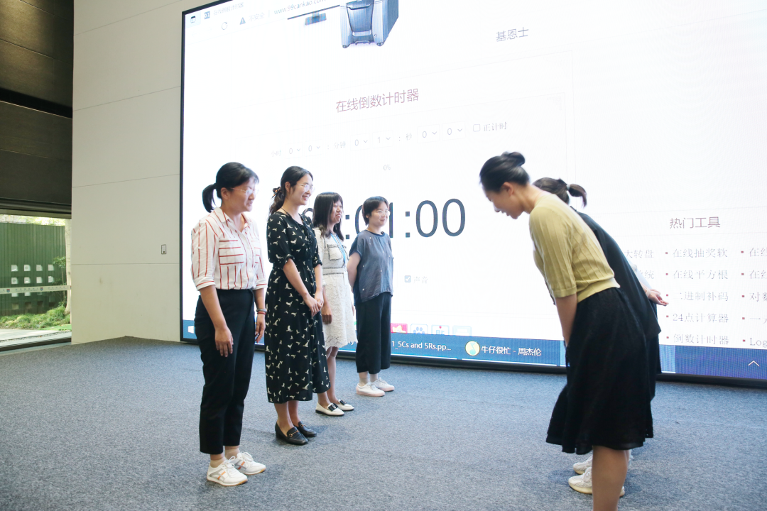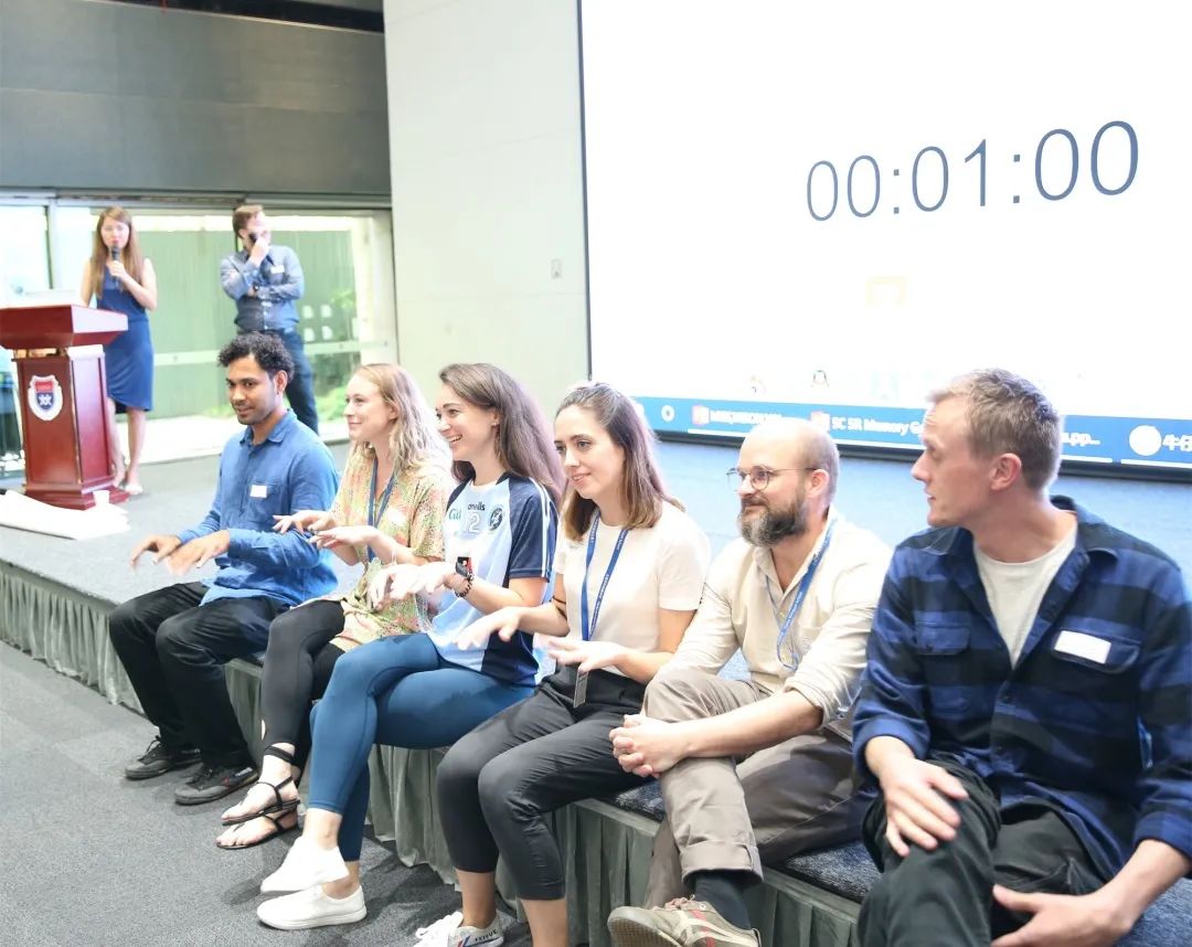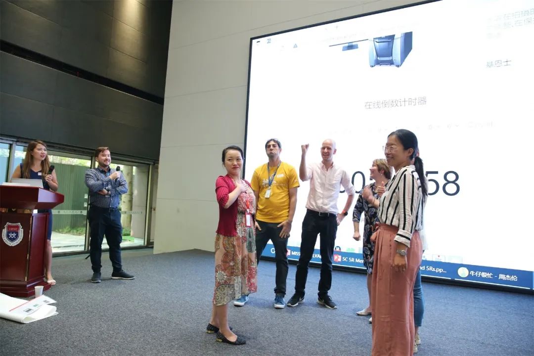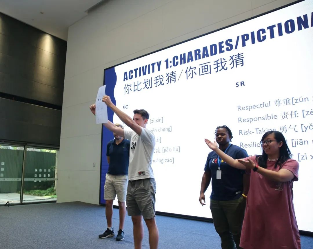 在热身环节,中外教师们开始玩“你画我猜”游戏,他们变身为演技精湛的演员,表情、动作到位,观众们答对正确率极高,我们5C5R的核心素养早已深入到每个人的内心和行动中。