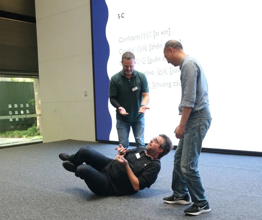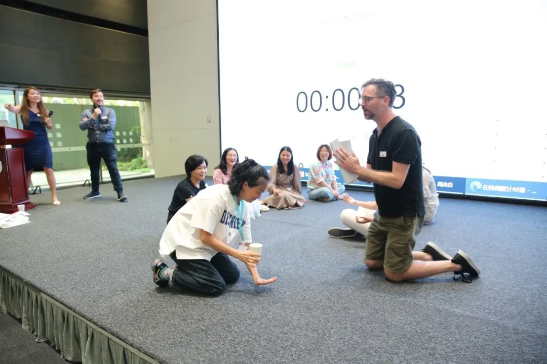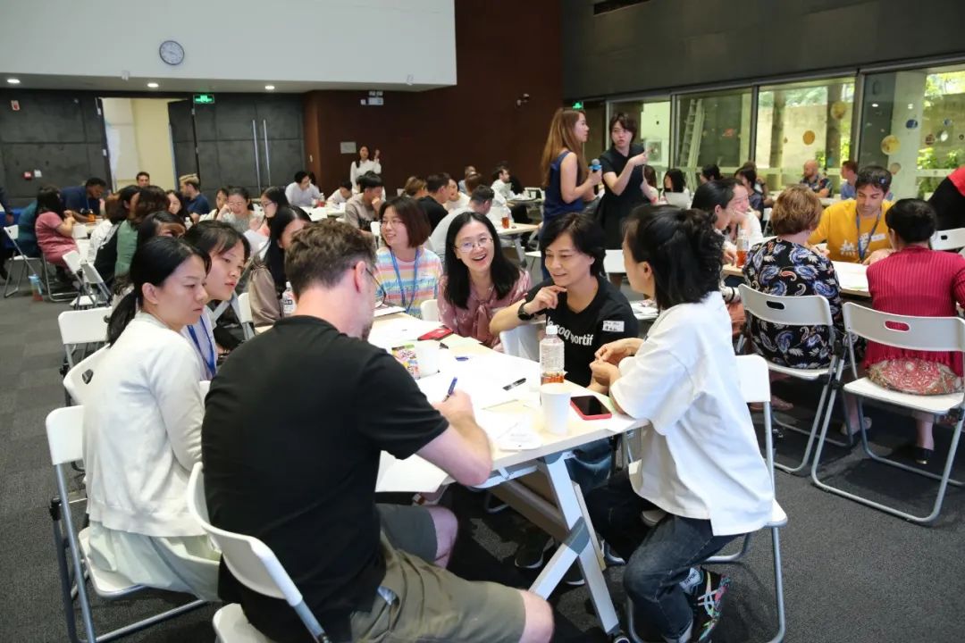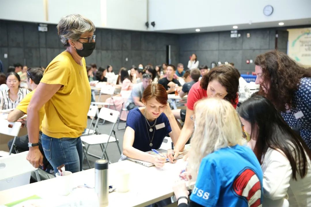 在热身环节,中外教师们开始玩“你画我猜”游戏,他们变身为演技精湛的演员,表情、动作到位,观众们答对正确率极高,我们5C5R的核心素养早已深入到每个人的内心和行动中。