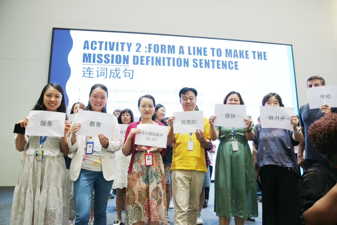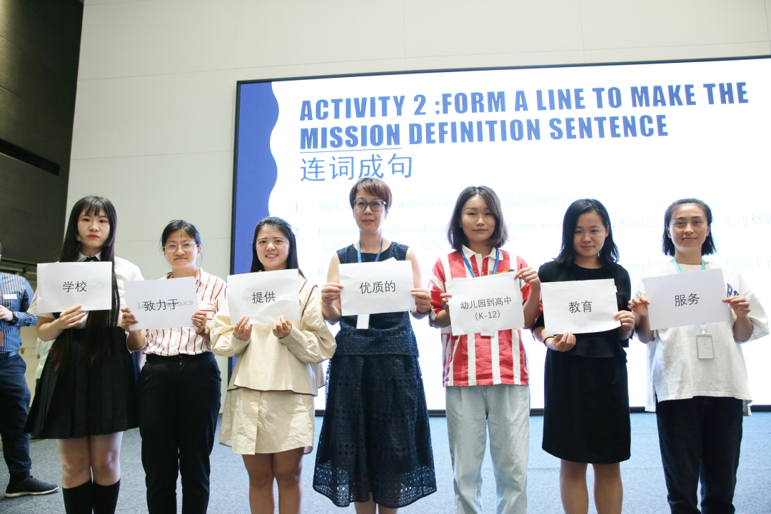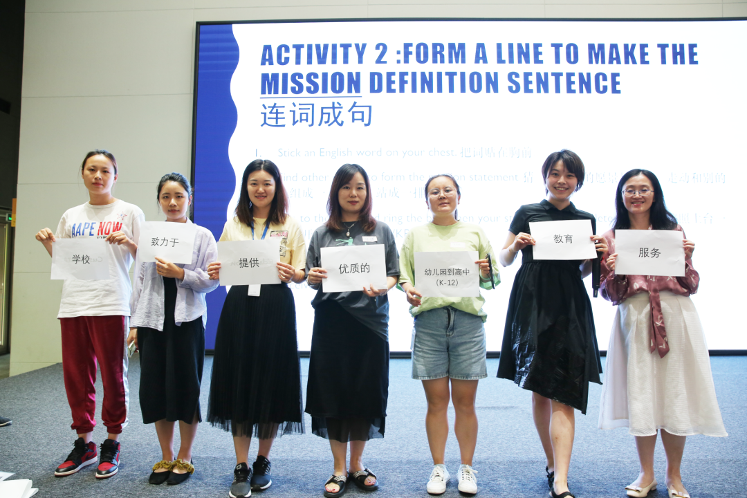 激烈的比赛开始,每组身上贴字的老师冲向舞台,快速站成一排,组成了我校的愿景——学校致力于提供优质的K12教育服务。其实在学校前进的步伐中,需要每一位VKBS家庭成员的力量,汇聚成一道光,为学生们照亮未来的成才之路。