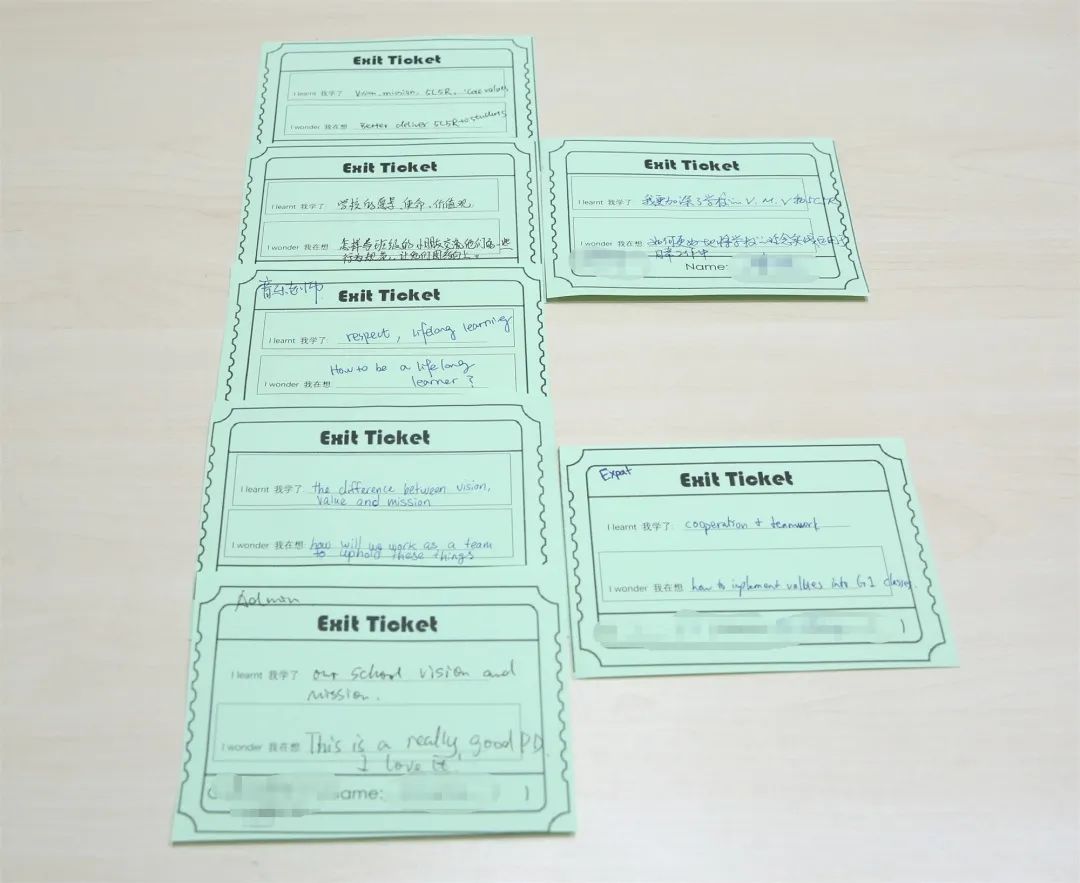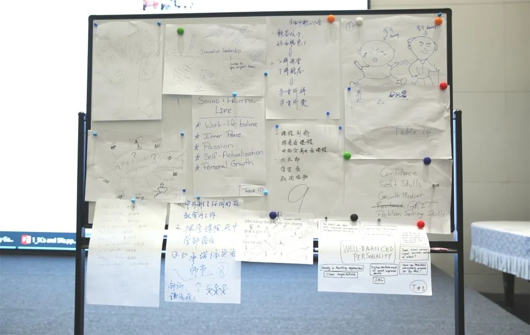 老师们以小组形式,讨论我们的核心价值观在学生校园生活中是怎么体现的。每组在几分钟的时间里,已经以文字和图片的形式,汇总了许多有用的信息与大家分享。