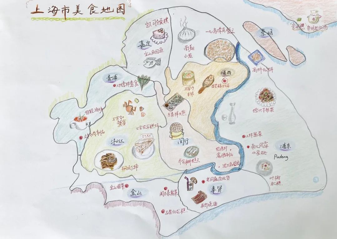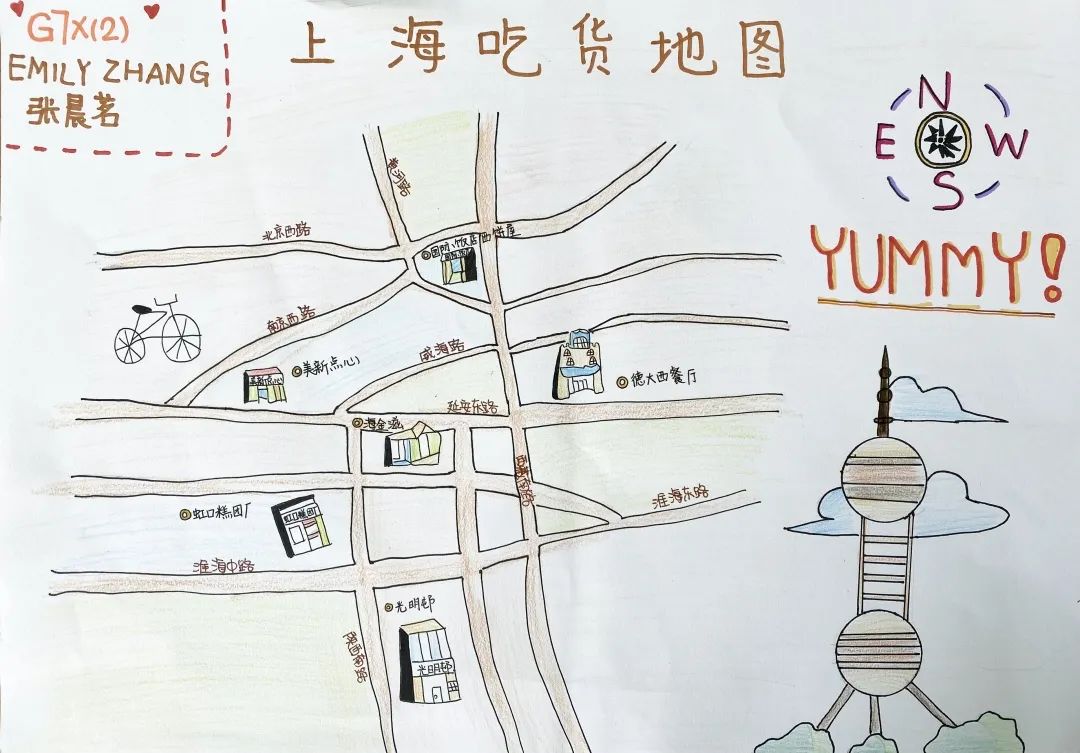 不论是上海的历史古迹,还是商业网点,抑或是园林生态,在同学们的画笔下都显得惟妙惟肖,A3纸虽小,却不能挡住闵行万科双语学子们的热情。在这次趣味手绘地图创作后,学生们发现,原来地理也可以很生动,前路漫漫可期,我们仍会以地理之名,与你精彩相逢!