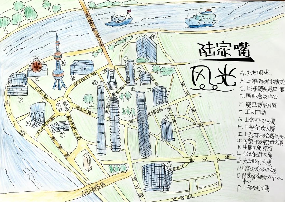 ▲有的同学的地图涵盖了众多游客的汇聚地,如陆家嘴区域,是上海市浦东新区的黄浦江畔,隔江面对外滩,是众多跨国银行的中国(含港澳台)及东亚总部所在地,也是中国最具影响力的金融中心之一。