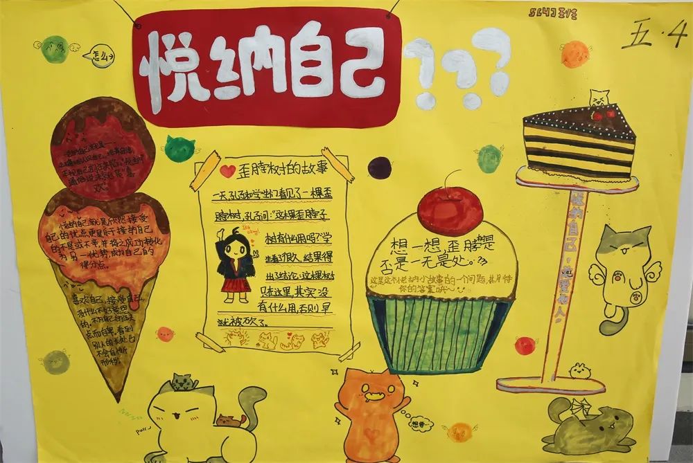 各班海报各具特色、百花齐放,着实为校园增色不少。相信同学们在这一活动中,对如何关爱自我、悦纳自己,有了更深的体会。希望大家在今后的学习生活中,不要忘记在心理健康活动月中的所见、所学、所思、所感,使我们的学习生活更加和谐,让我们的身心健康成长。