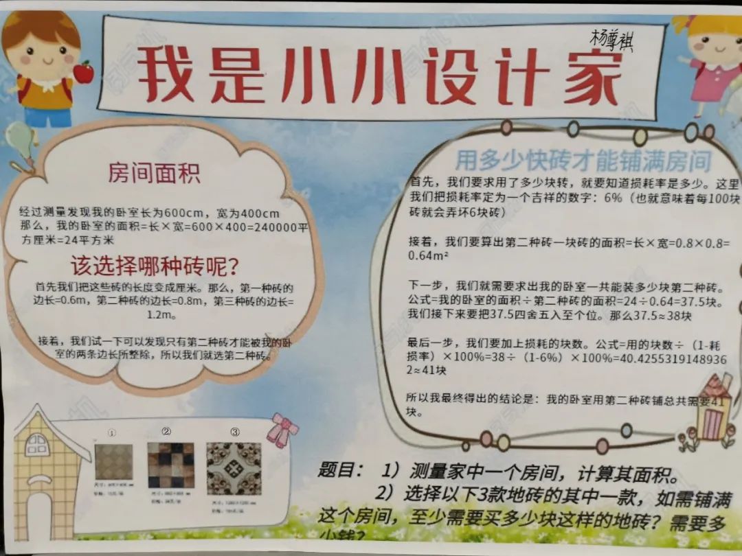 鸿雁翩跹春又回,时光荏苒学子归。孩子们的寒假优秀作品伴着微风、细雨登场。小学生们创造力无限,执行力高效,制作读书小报、趣味数学知识小报、运用数学知识测量设计房间。每一份详细的计划,每一张构思精巧、形式新颖作品,每一个内涵丰富的视频,处处体现着她们独具匠心的设计和热衷学习的坚守,展现了她们的动手操作能力、社会实践能力、创新意识。我们赶紧来一睹风采吧!