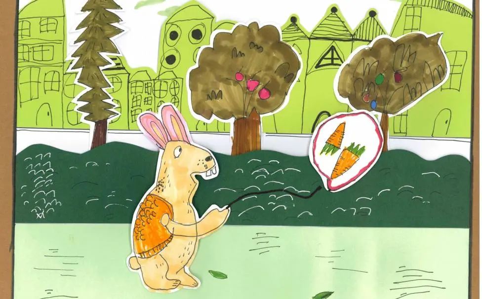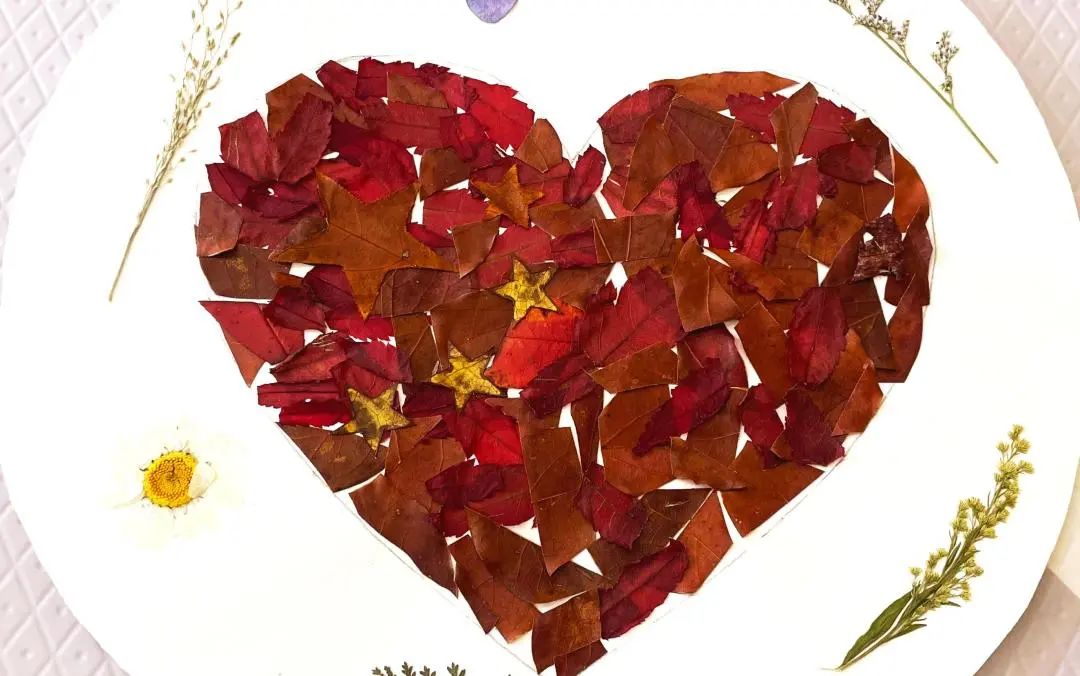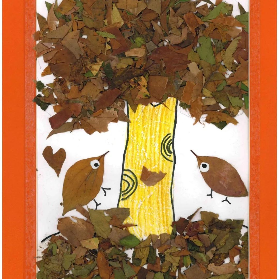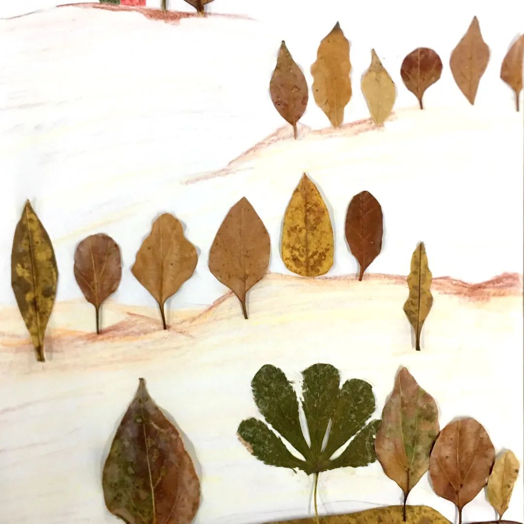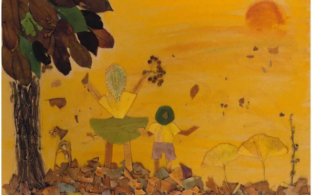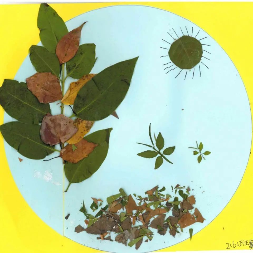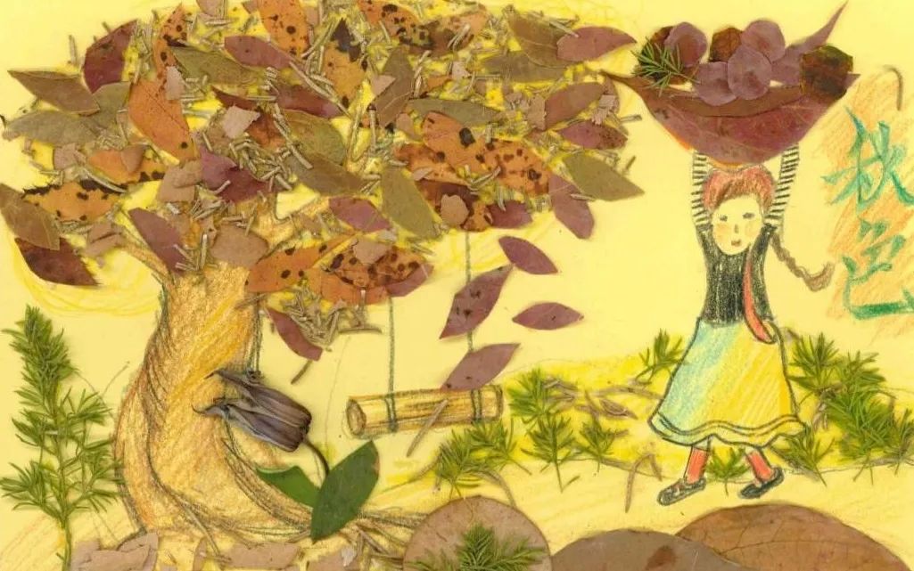 The beauty of autumn is colorful. Layers of fallen leaves are gifts from autumn and material for children’s artistic creation. They made unique, creative works of art by virtue of imagination, conception, cutting, and collages.