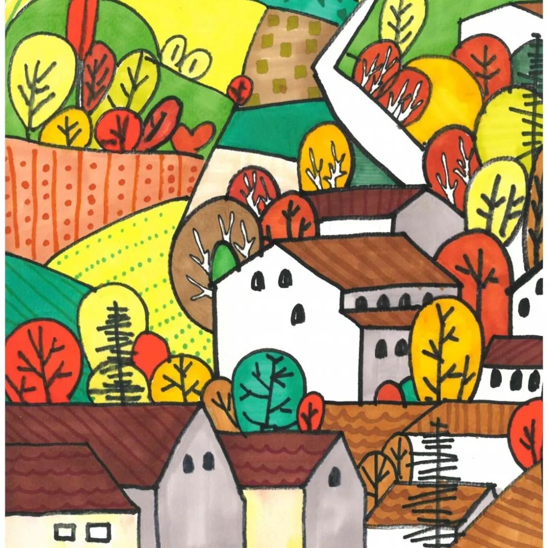 The beauty of autumn is mature. Strong colors stimulated people’s senses, and children depicted the unique beauty of “autumn” through autumn scenery paintings.