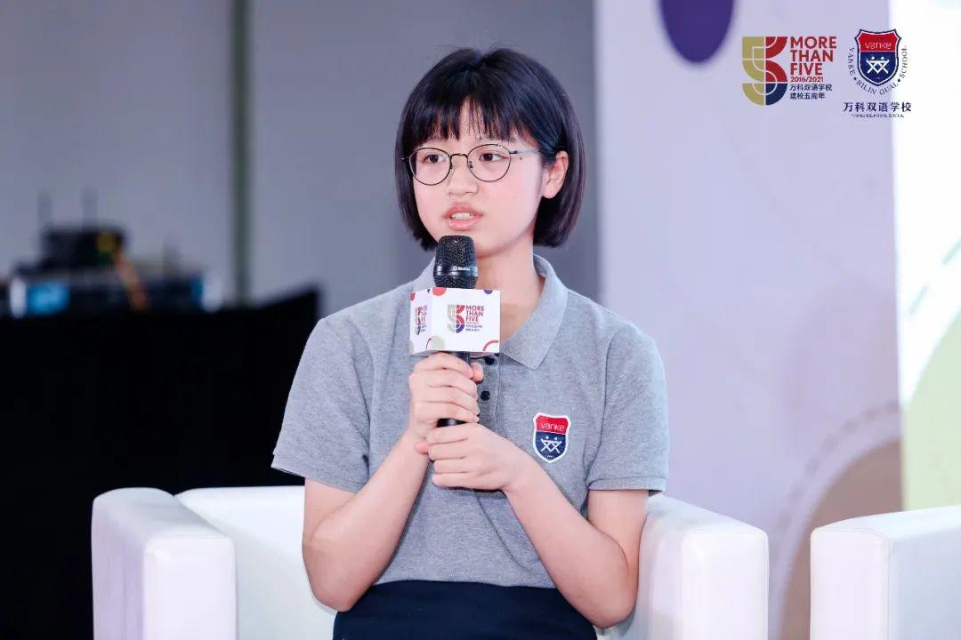 优秀学生代表吴欣桐,她是一位阳光开朗、兴趣广泛的7年级学生,喜欢唱歌、赛艇、辩论、尤其擅长编程和机器人,并担任机器人赛事中的主操控手。疫情期间设计的正能量收集车获得DFC上海赛区二等奖,宋庆龄少儿发明奖三等奖。她在3、4年级开始接触编程,享受其中得心应手,以及喜欢参与机器人、编程比赛,在赛场中能够更快地提升自己的综合素质,这对她来说是一个值得回忆的经历。