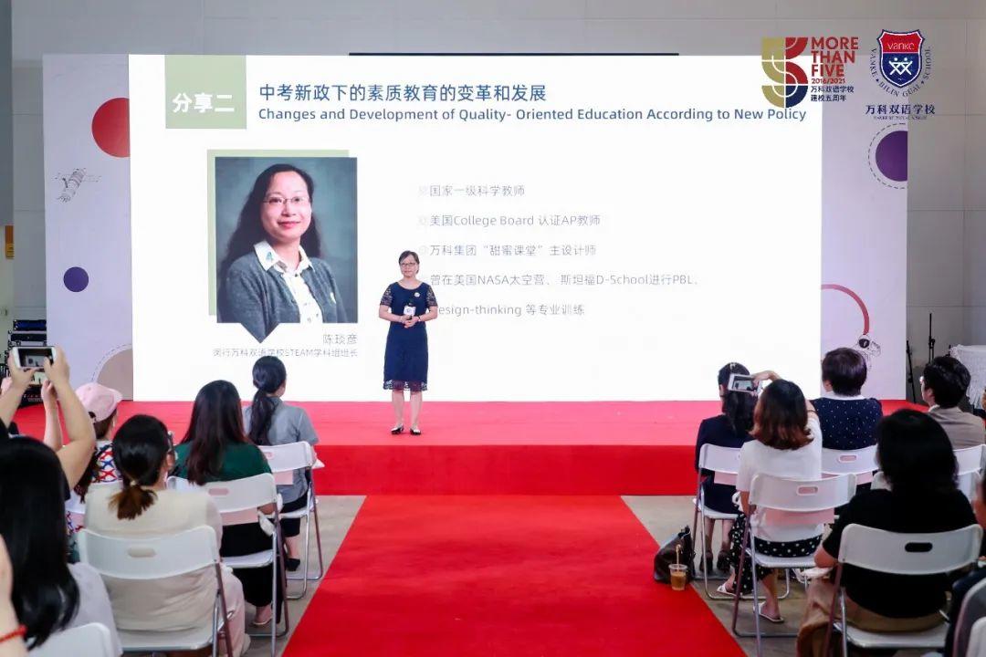 在新中考改革中,教育从批量化到个性化,学生从螺丝钉到创造者、实施者,老师从教书匠到课程设计师。明星老师陈琰彥介绍了最新的中考新政,8年级已经开始中考科目的考试,在综合测评部分增加了跨学科案例分析题,涉及到地理和生命科学学科,未来会拓展为与科学相关的学科。