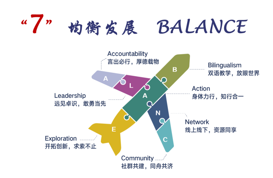 学校拥有高学术水准的中外方教师管理团队,以立足中国、开拓全球视野、激发无限潜能为教育目标,通过浸润式小班化教学,开展中英双语多文化融合课程。